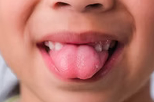 A tongue tie (also called ankyloglossia) occurs when the thin band of tissue under the tongue (lingual frenulum) is too short, tight, or thick, limiting the tongue's range of motion.